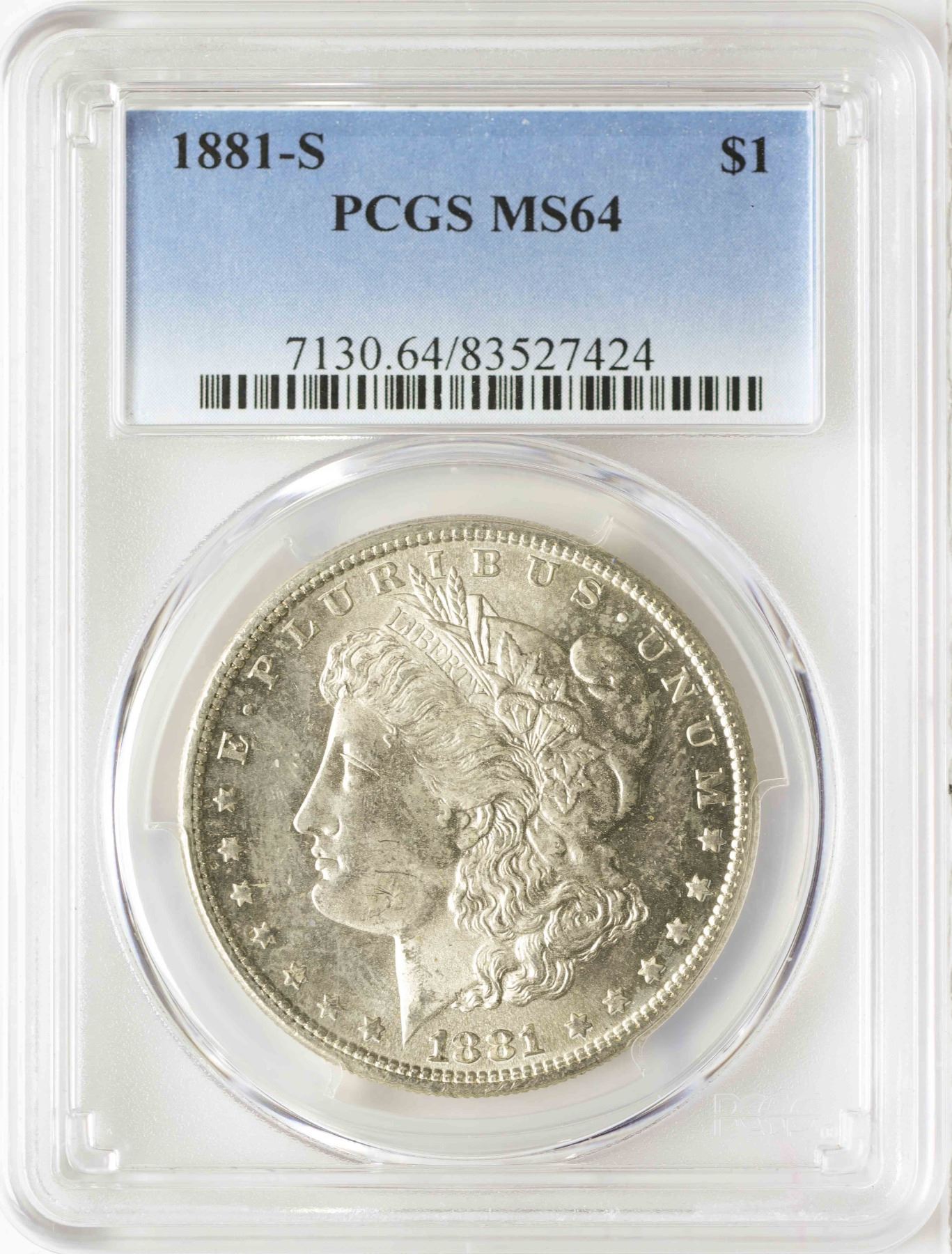 One 1881-S $1 Morgan Silver Dollar Coin PCGS MS64.