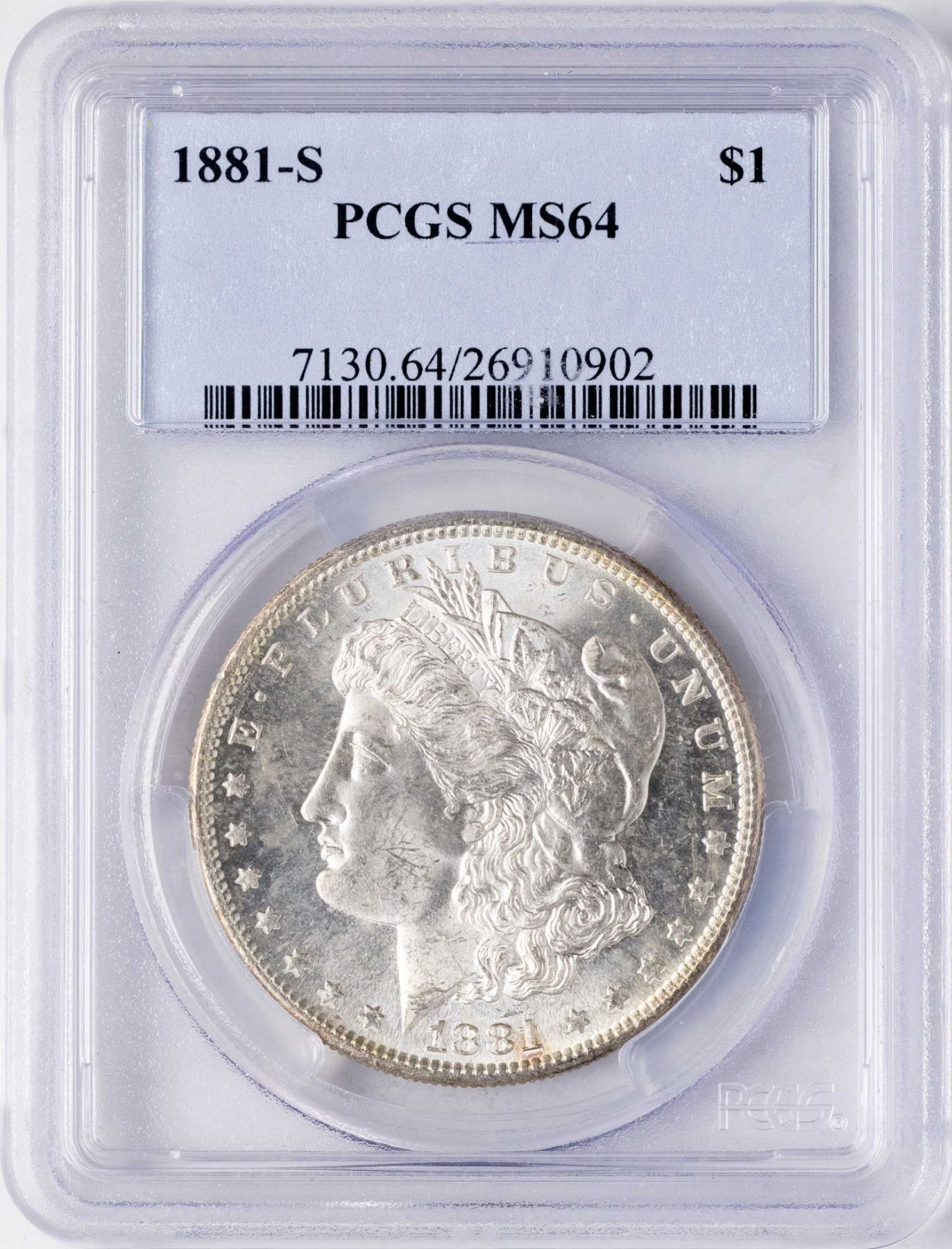 One 1881-S $1 Morgan Silver Dollar Coin PCGS MS64.