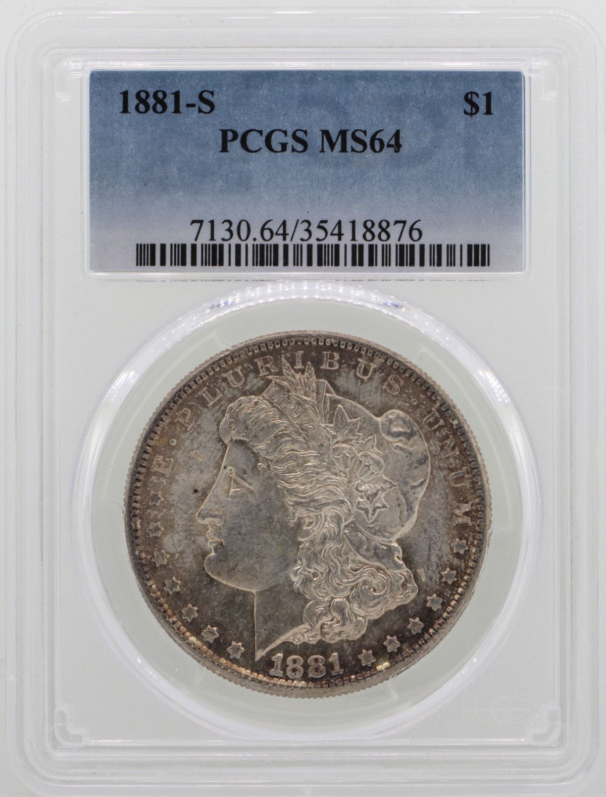 One 1881-S $1 Morgan Silver Dollar Coin PCGS MS64.