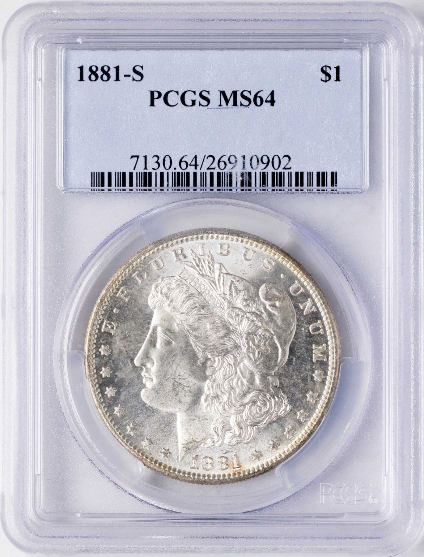 One 1881-S $1 Morgan Silver Dollar Coin PCGS MS64.