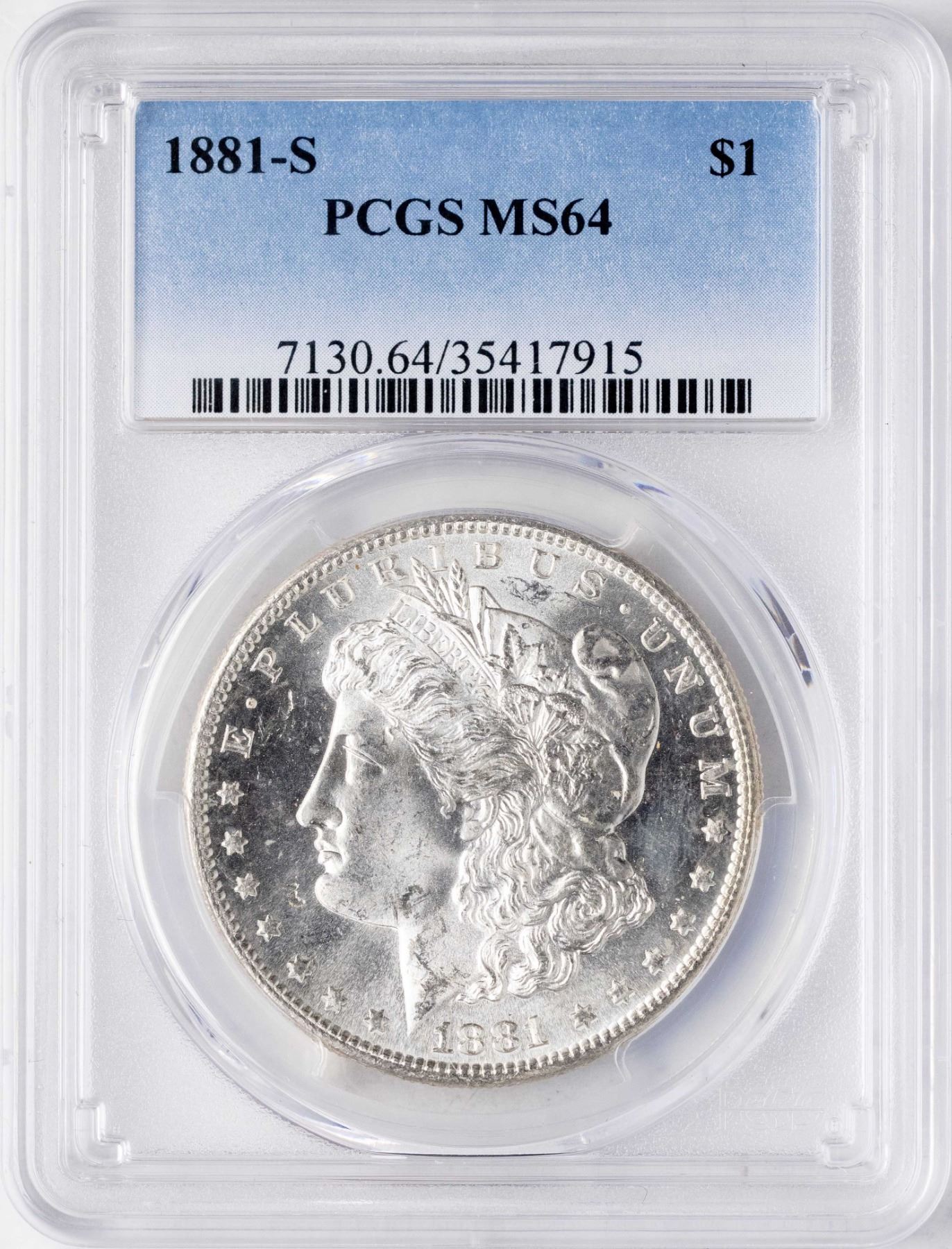 One 1881-S $1 Morgan Silver Dollar Coin PCGS MS64.