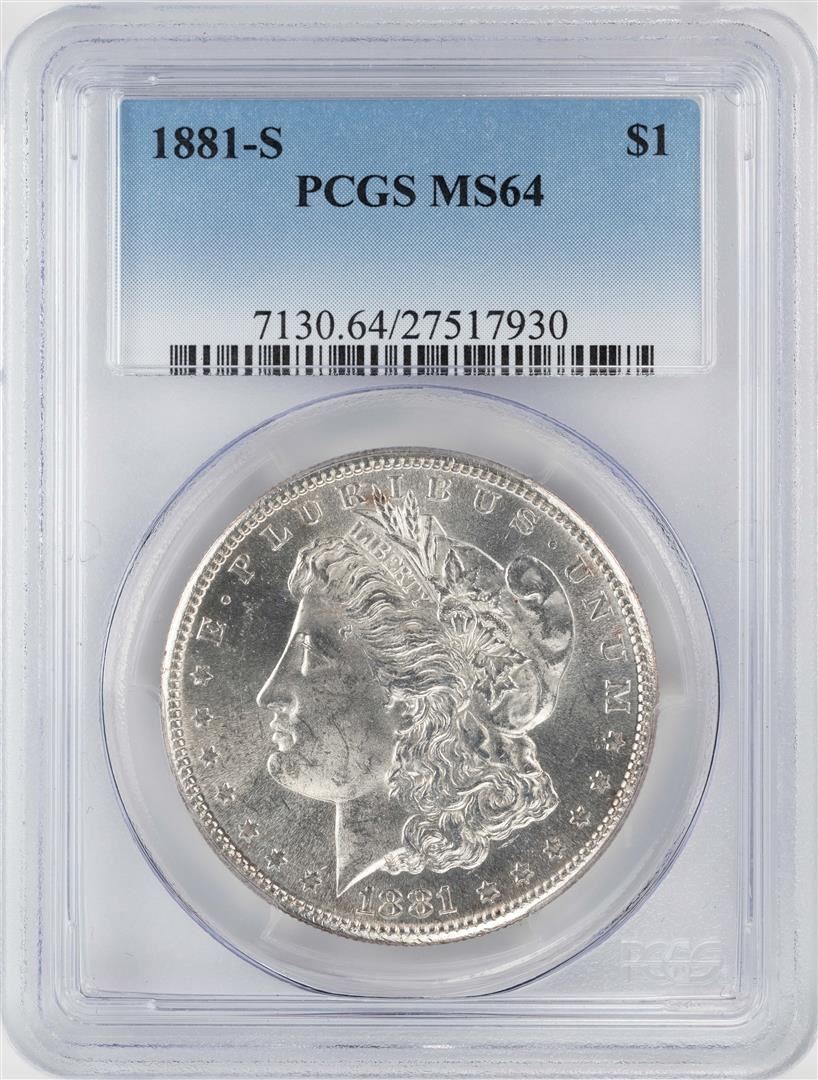 One 1881-S $1 Morgan Silver Dollar Coin PCGS MS64. PCGS Graded.
