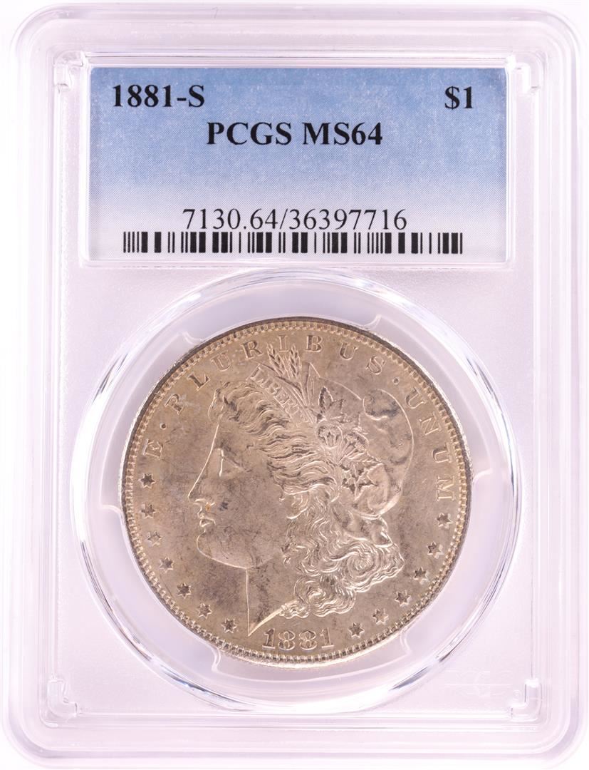 One 1881-S $1 Morgan Silver Dollar Coin PCGS MS64. PCGS Graded.