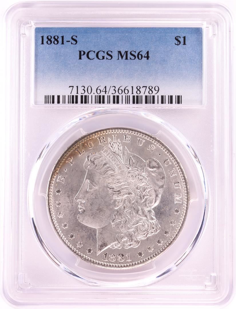 One 1881-S $1 Morgan Silver Dollar Coin PCGS MS64. PCGS Graded.