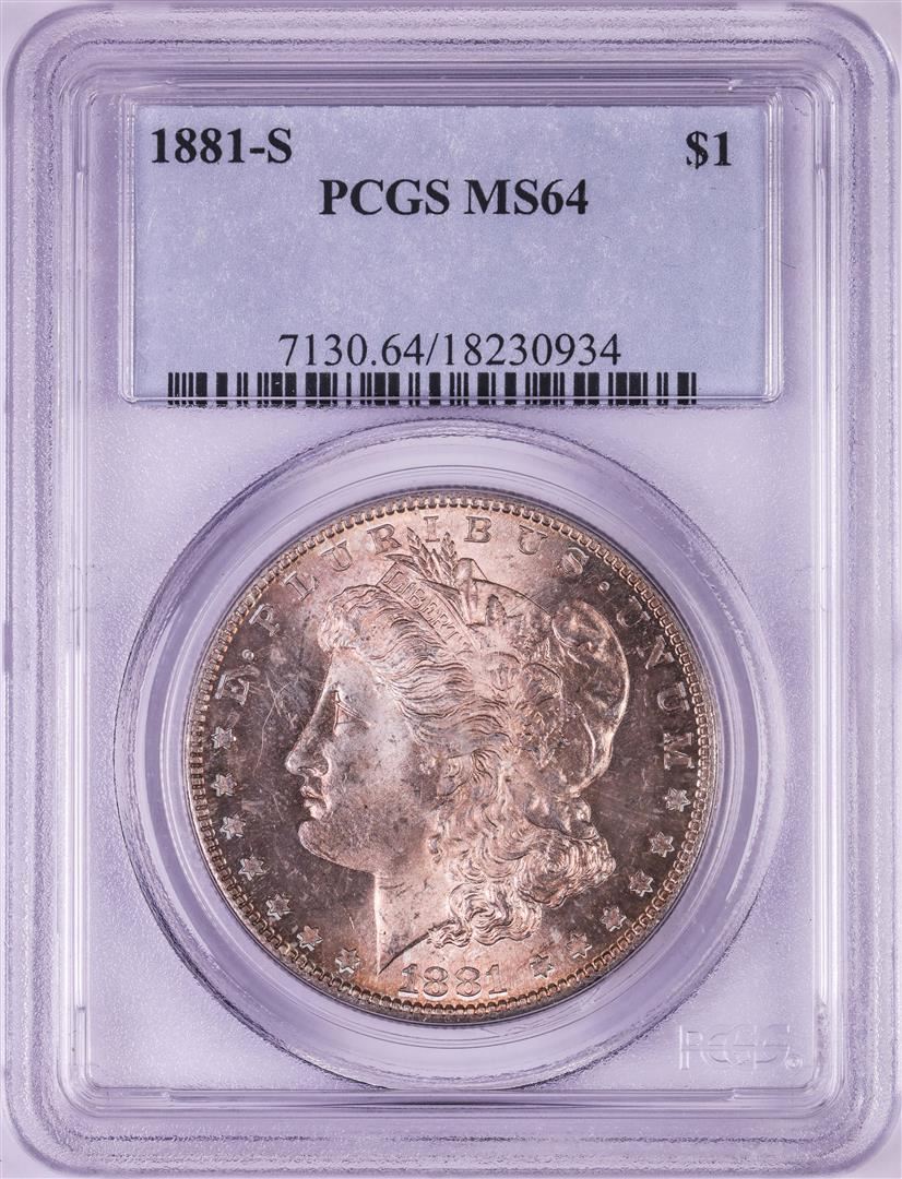 One 1881-S $1 Morgan Silver Dollar Coin PCGS MS64. PCGS Graded.