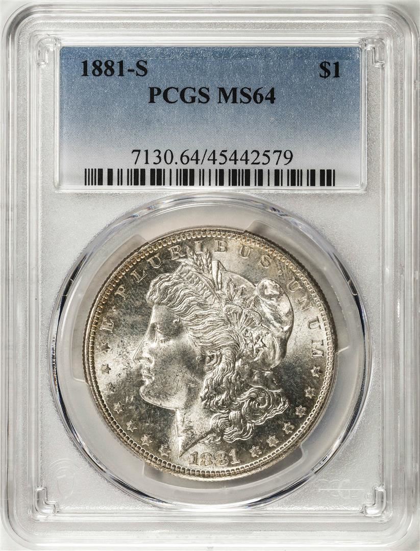 One 1881-S $1 Morgan Silver Dollar Coin PCGS MS64. PCGS Graded.