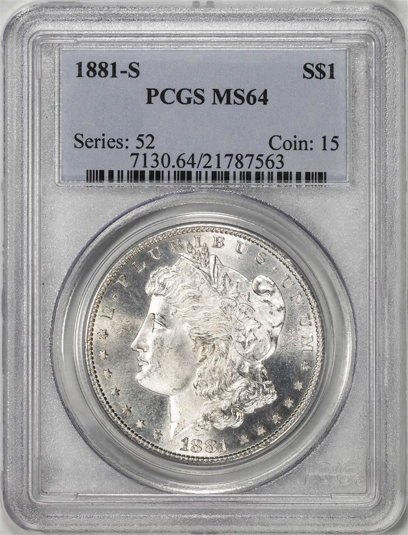 One 1881-S $1 Morgan Silver Dollar Coin PCGS MS64. PCGS Graded.