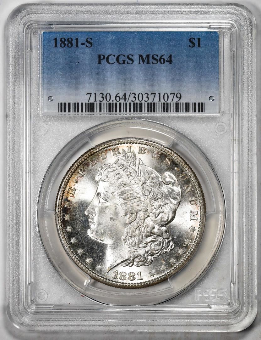 One 1881-S $1 Morgan Silver Dollar Coin PCGS MS64. PCGS Graded.