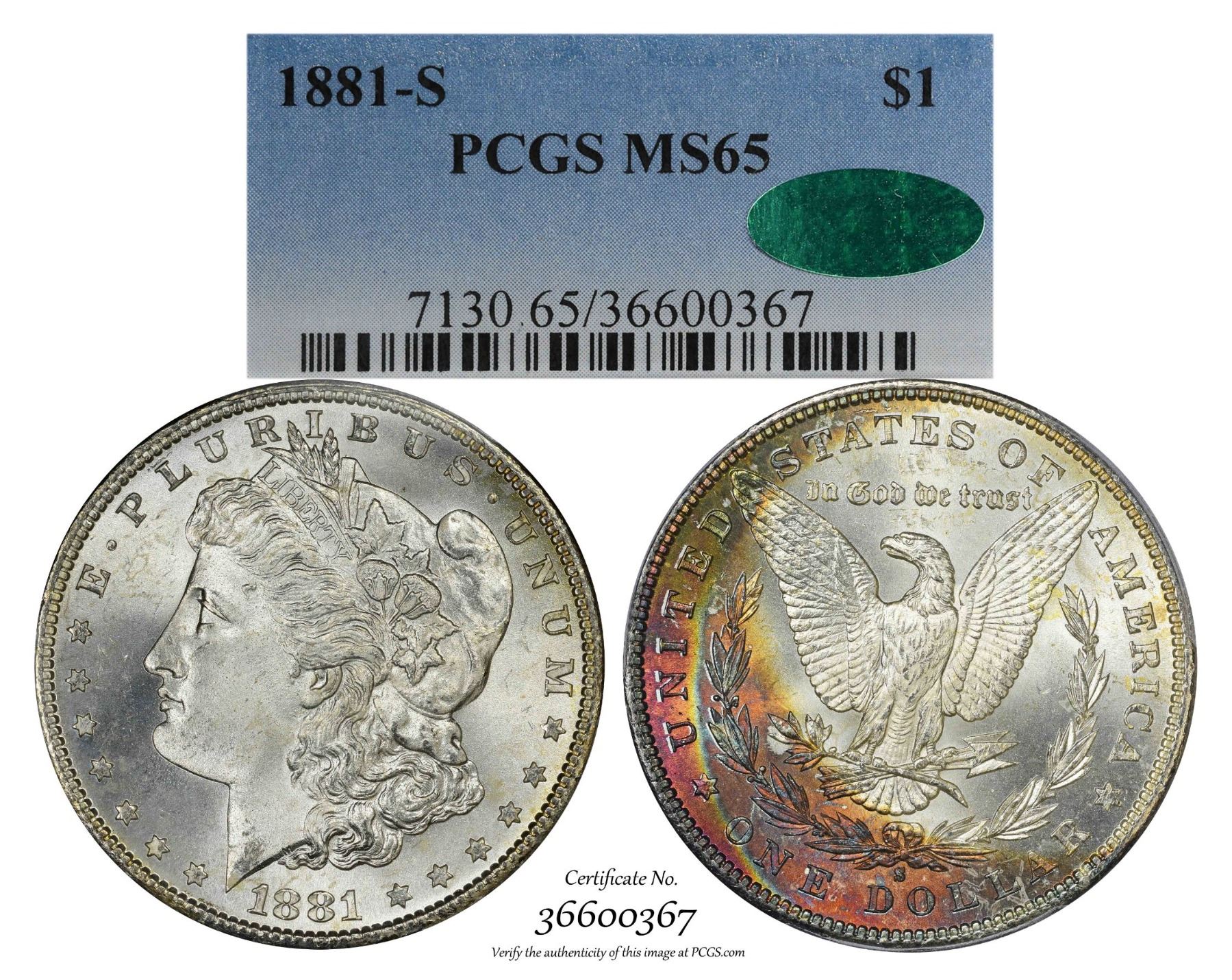 One 1881-S $1 Morgan Silver Dollar Coin PCGS MS65 CAC Amazing Toning.