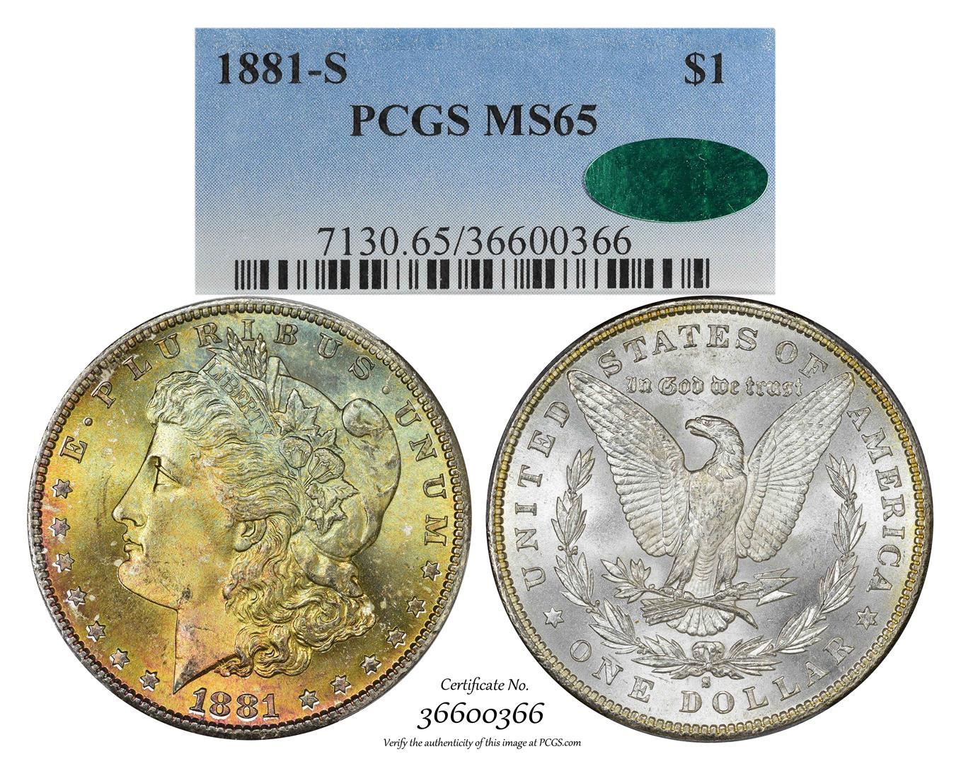 1881-S $1 Morgan Silver Dollar Coin PCGS MS65 CAC Amazing Toning
