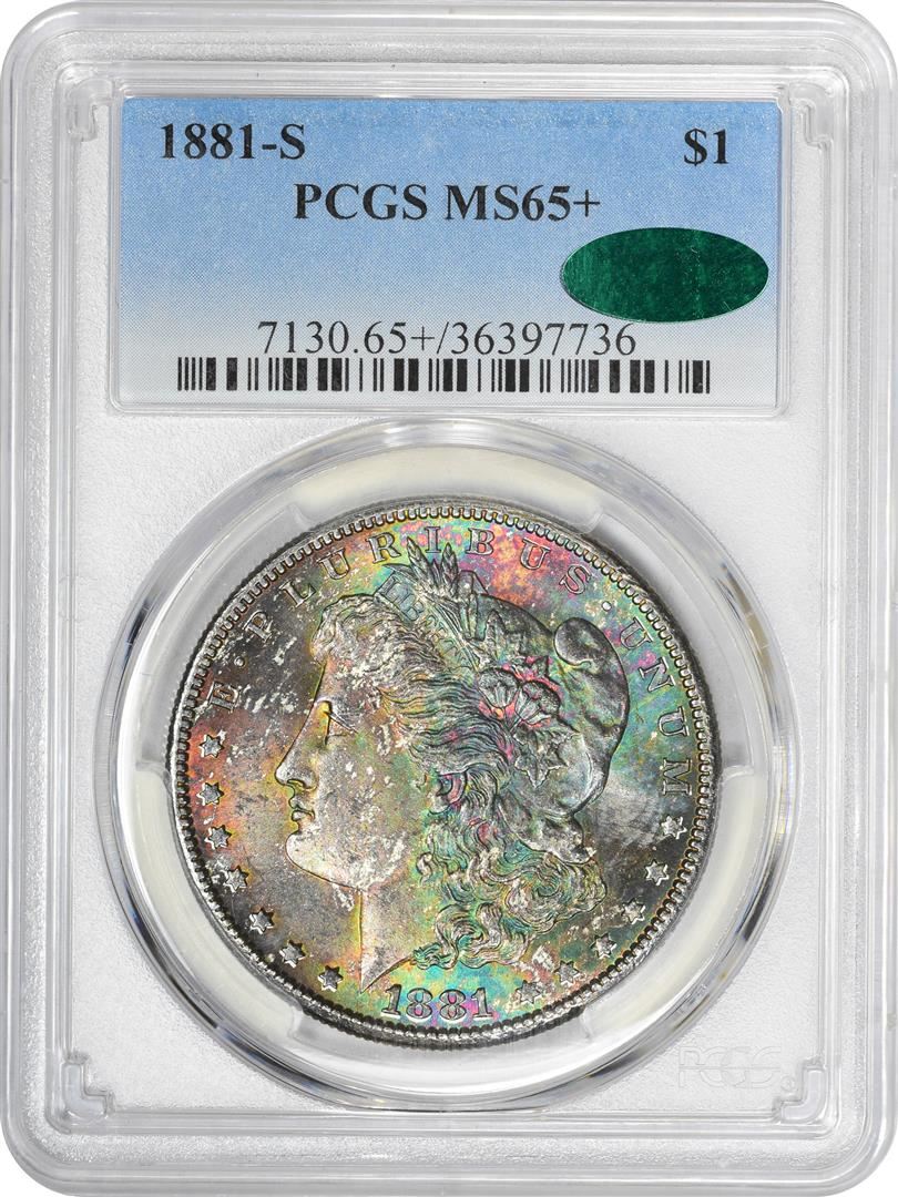 One 1881-S $1 Morgan Silver Dollar Coin PCGS MS65+ CAC Amazing Toning. PCGS Graded.