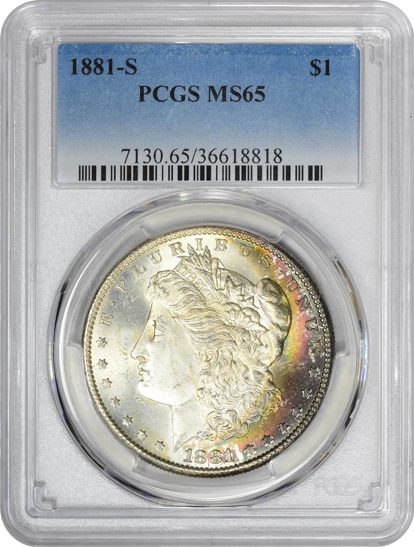 One 1881-S $1 Morgan Silver Dollar Coin PCGS MS65 Nice Toning. PCGS Graded.