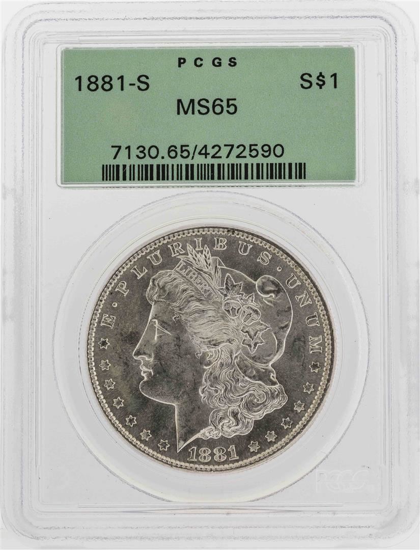 One 1881-S $1 Morgan Silver Dollar Coin PCGS MS65. PCGS Graded.