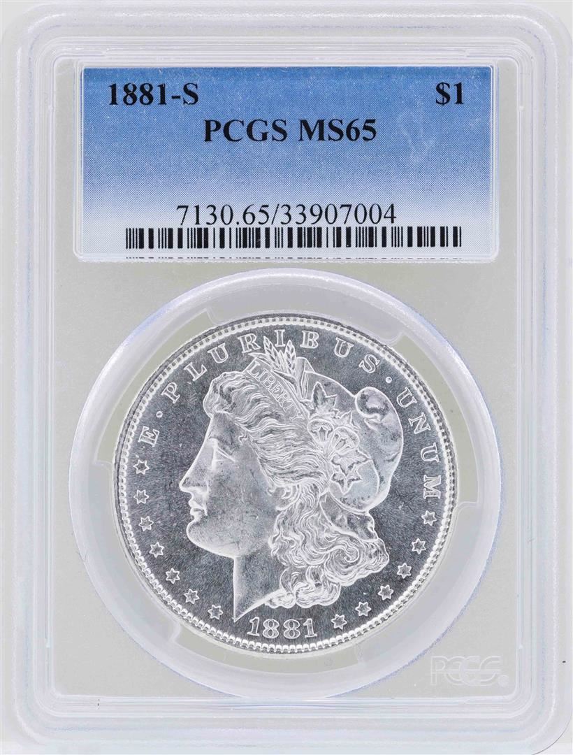 One 1881-S $1 Morgan Silver Dollar Coin PCGS MS65. PCGS Graded.