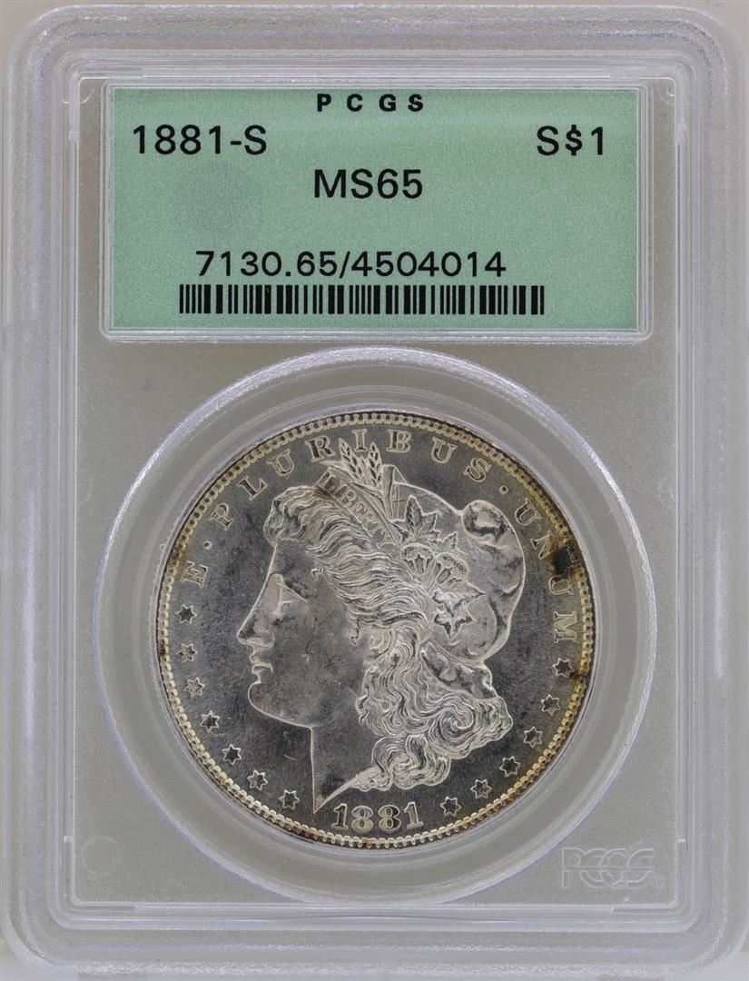 One 1881-S $1 Morgan Silver Dollar Coin PCGS MS65. PCGS Certified.