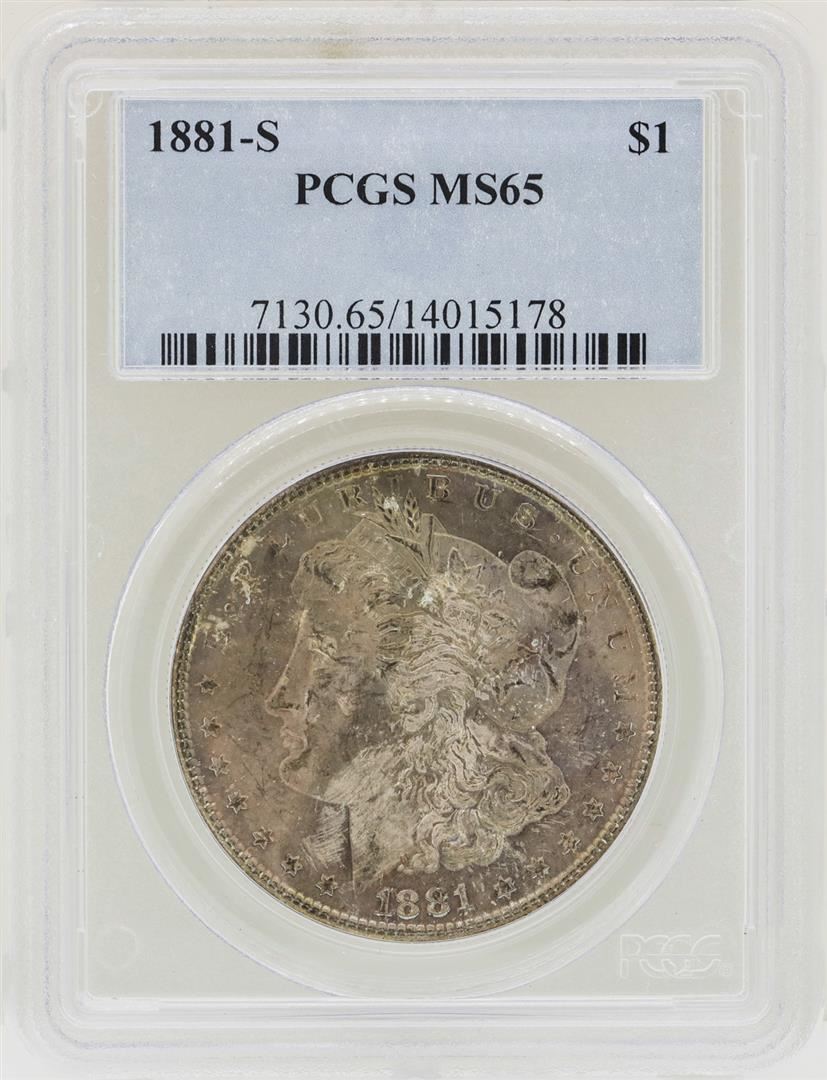 One 1881-S $1 Morgan Silver Dollar Coin PCGS MS65. PCGS Certified.