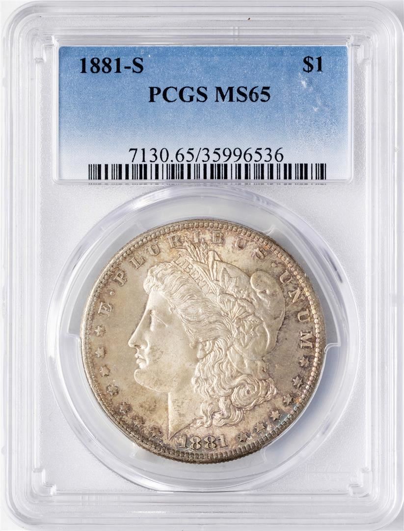 One 1881-S $1 Morgan Silver Dollar Coin PCGS MS65. PCGS Graded.