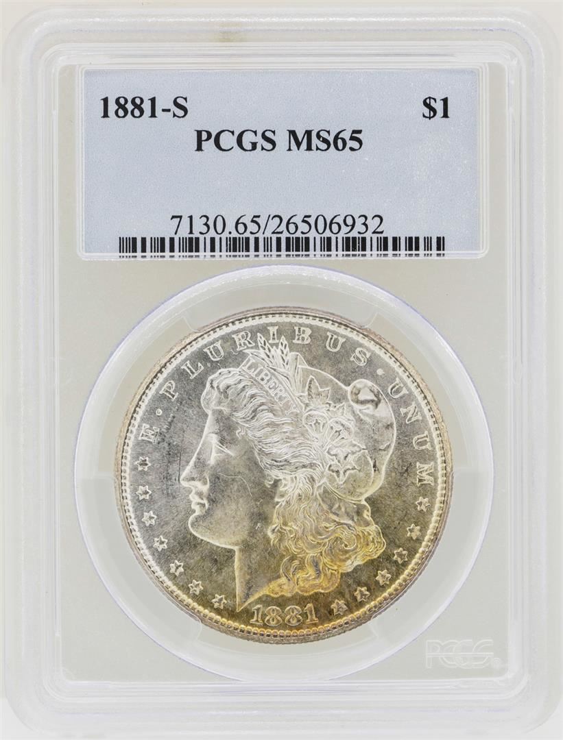 One 1881-S $1 Morgan Silver Dollar Coin PCGS MS65. PCGS Certified.