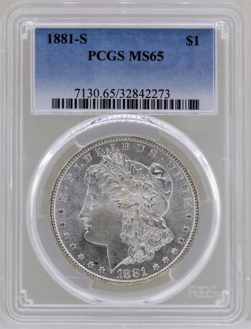 One 1881-S $1 Morgan Silver Dollar Coin PCGS MS65. PCGS Certified.
