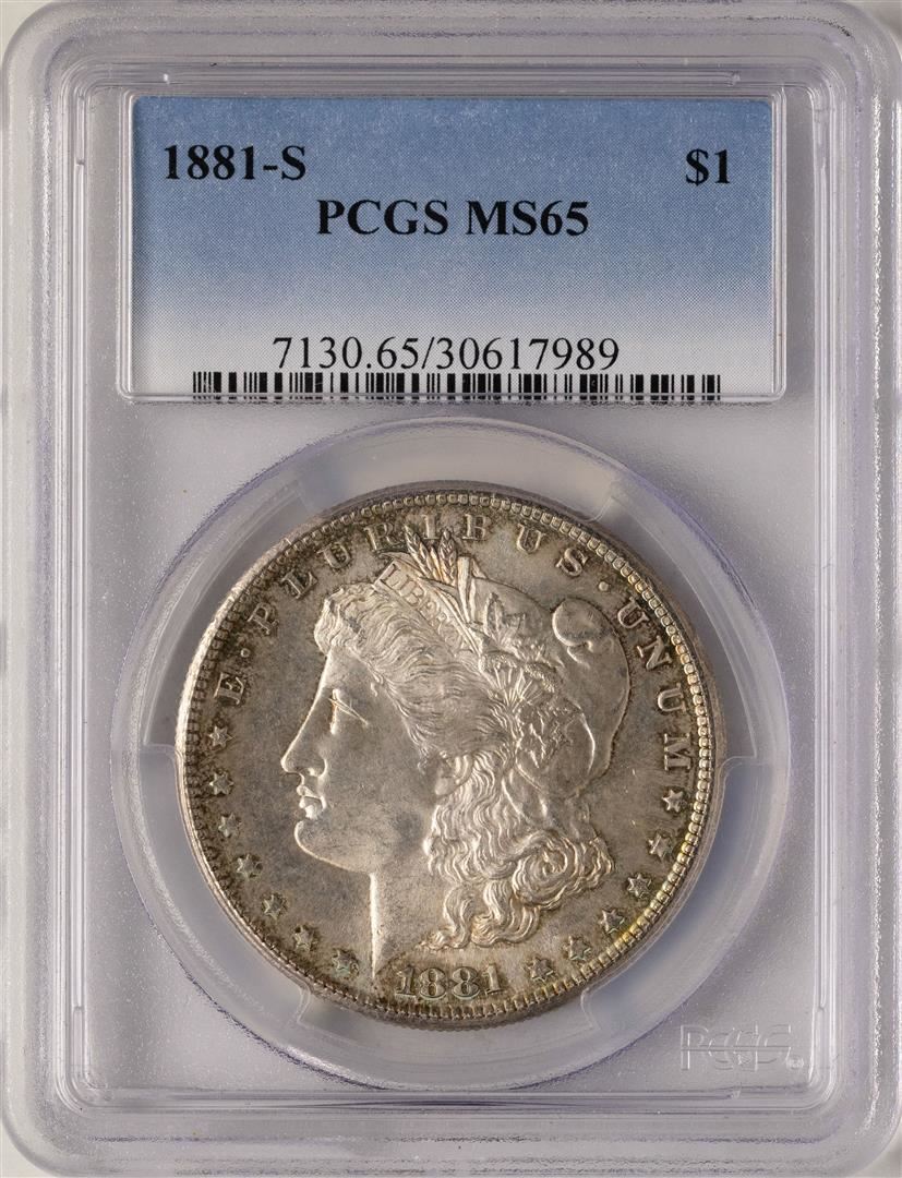 One 1881-S $1 Morgan Silver Dollar Coin PCGS MS65. PCGS Graded.