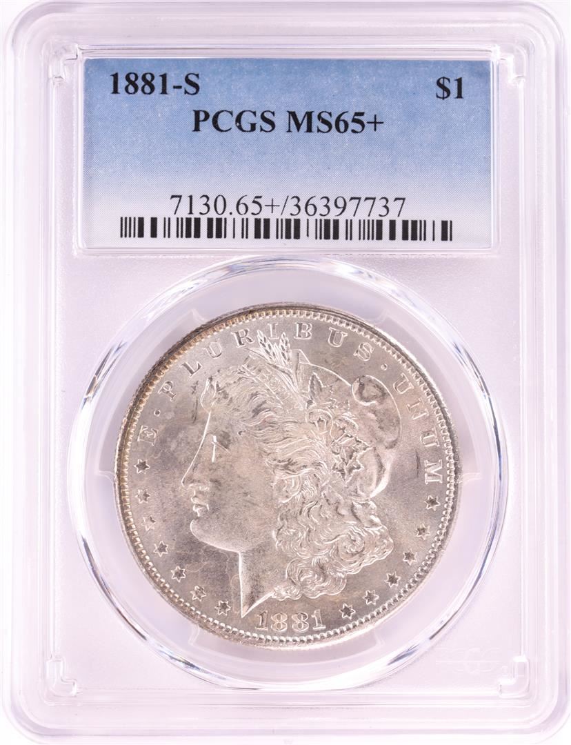 One 1881-S $1 Morgan Silver Dollar Coin PCGS MS65+. PCGS Graded.