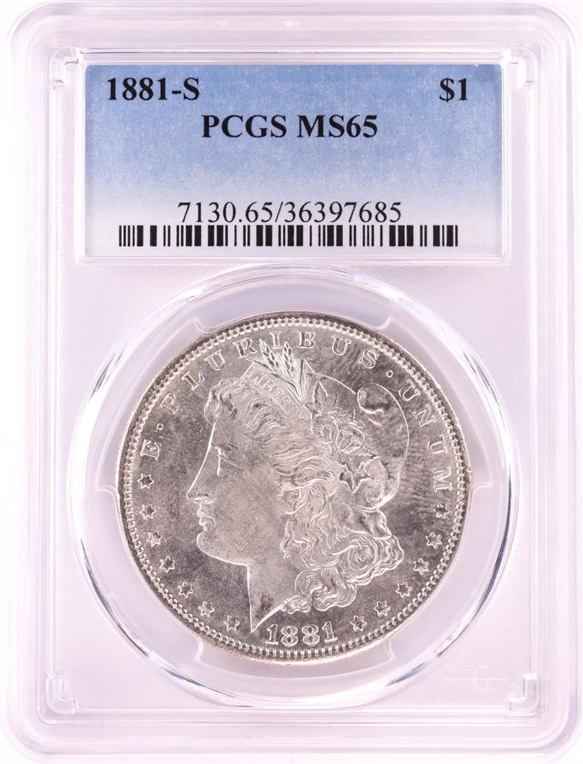 One 1881-S $1 Morgan Silver Dollar Coin PCGS MS65. PCGS Graded.