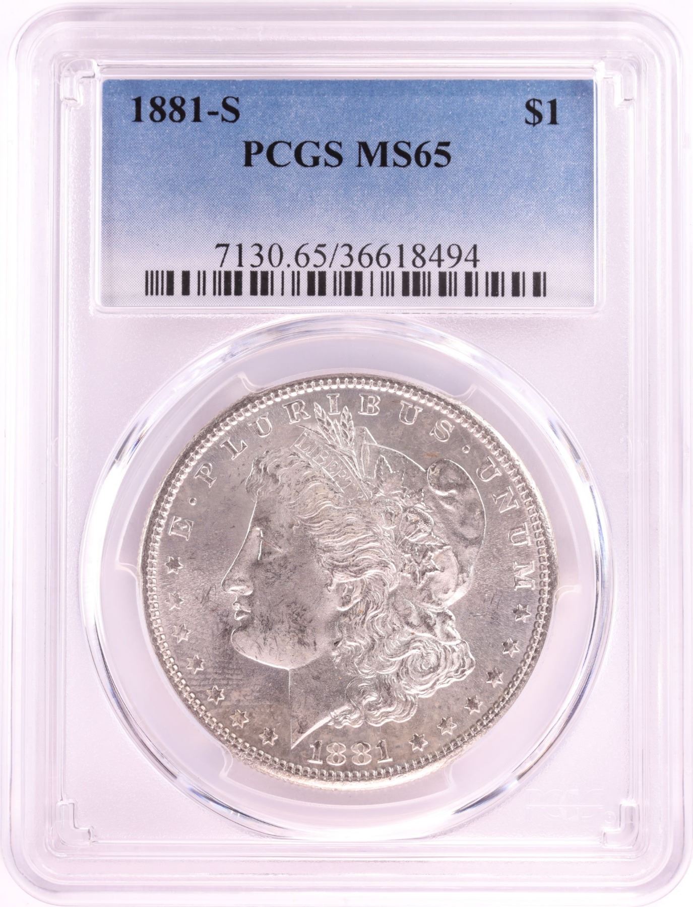 One 1881-S $1 Morgan Silver Dollar Coin PCGS MS65.