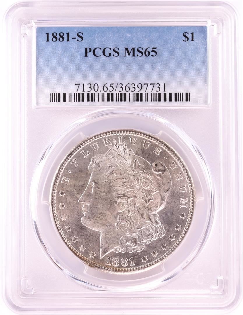 One 1881-S $1 Morgan Silver Dollar Coin PCGS MS65. PCGS Graded.