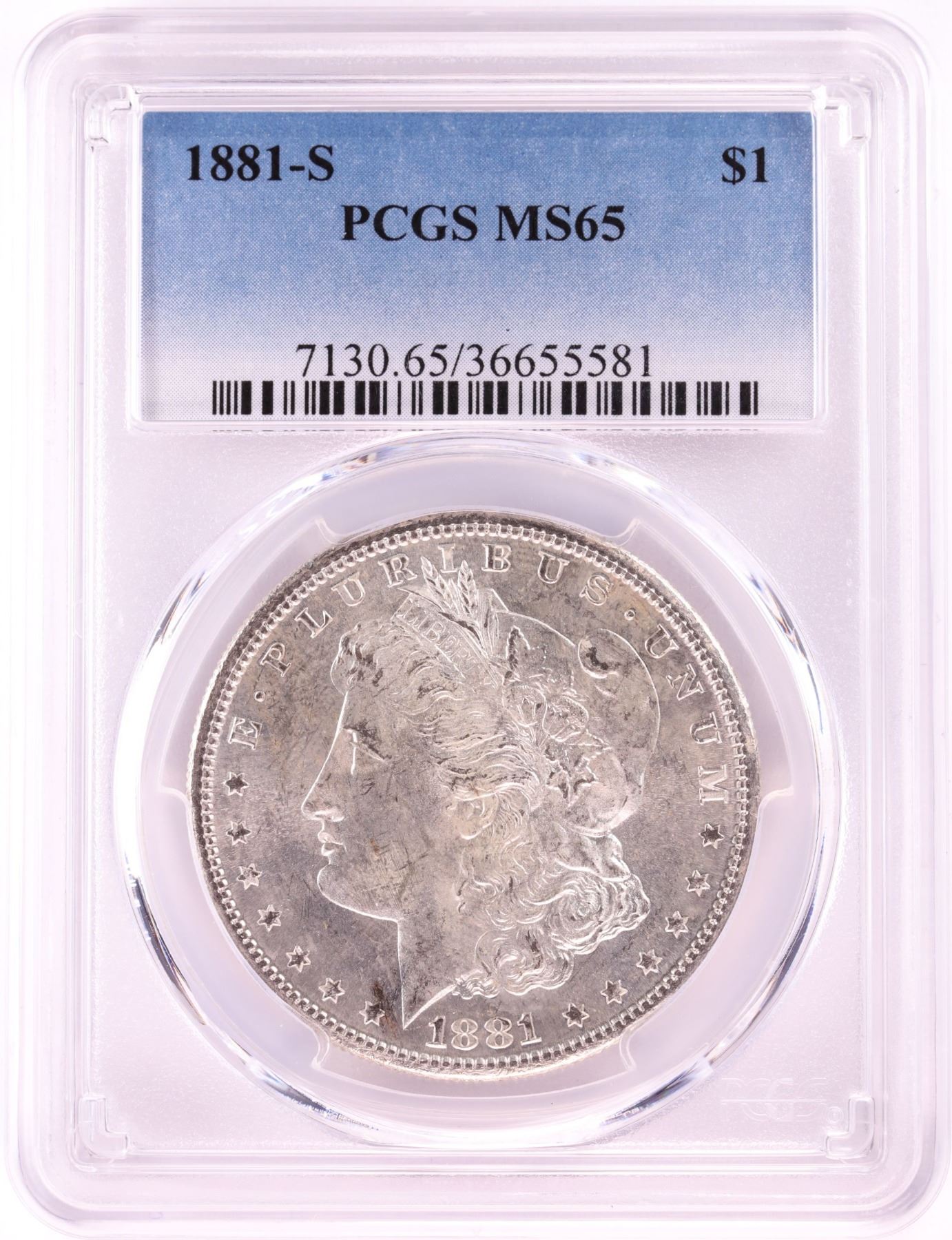 One 1881-S $1 Morgan Silver Dollar Coin PCGS MS65.