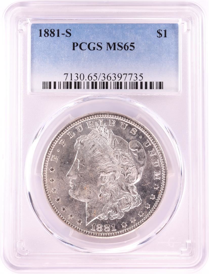 One 1881-S $1 Morgan Silver Dollar Coin PCGS MS65. PCGS Graded.