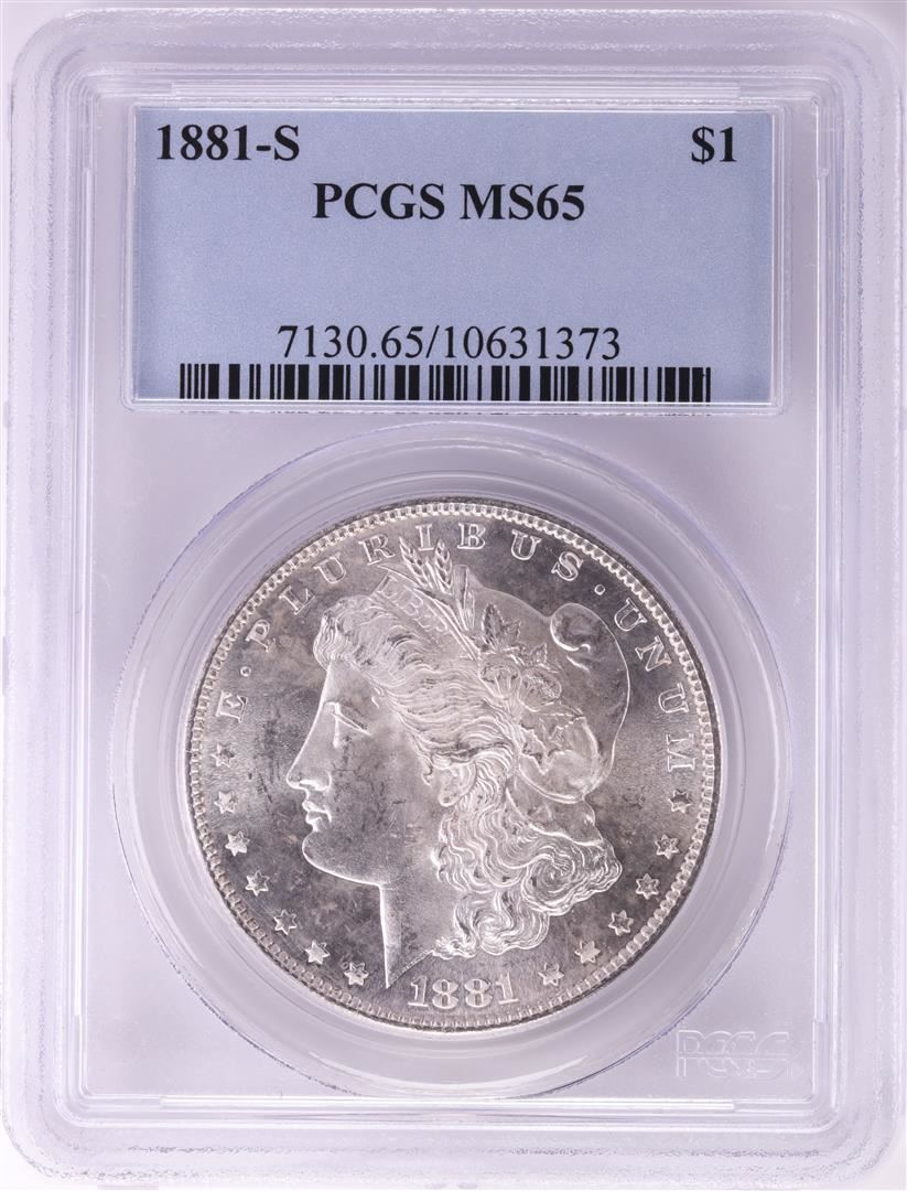 One 1881-S $1 Morgan Silver Dollar Coin PCGS MS65.