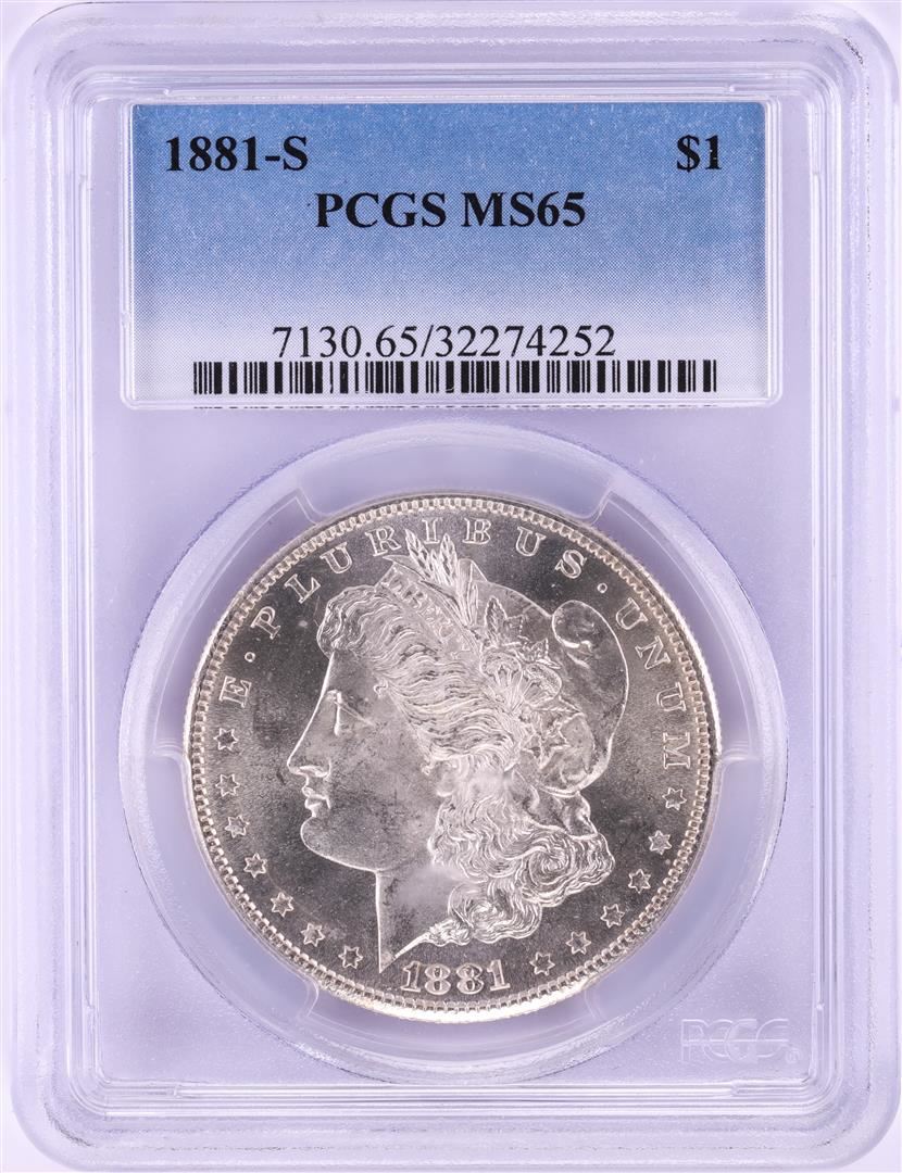 One 1881-S $1 Morgan Silver Dollar Coin PCGS MS65. PCGS Graded.
