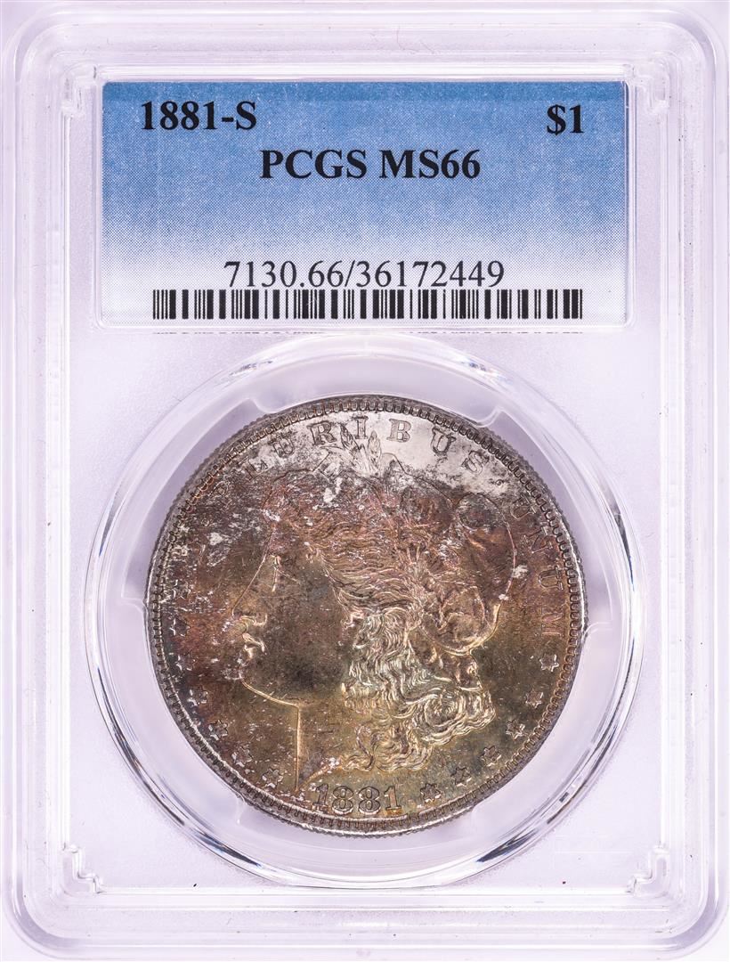 One 1881-S $1 Morgan Silver Dollar Coin PCGS MS66 Amazing Toning. PCGS Graded.