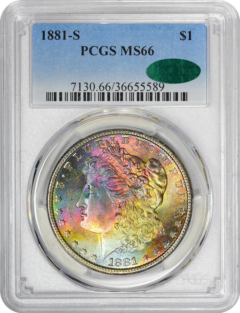 One 1881-S $1 Morgan Silver Dollar Coin PCGS MS66 CAC Amazing Toning. PCGS Graded.