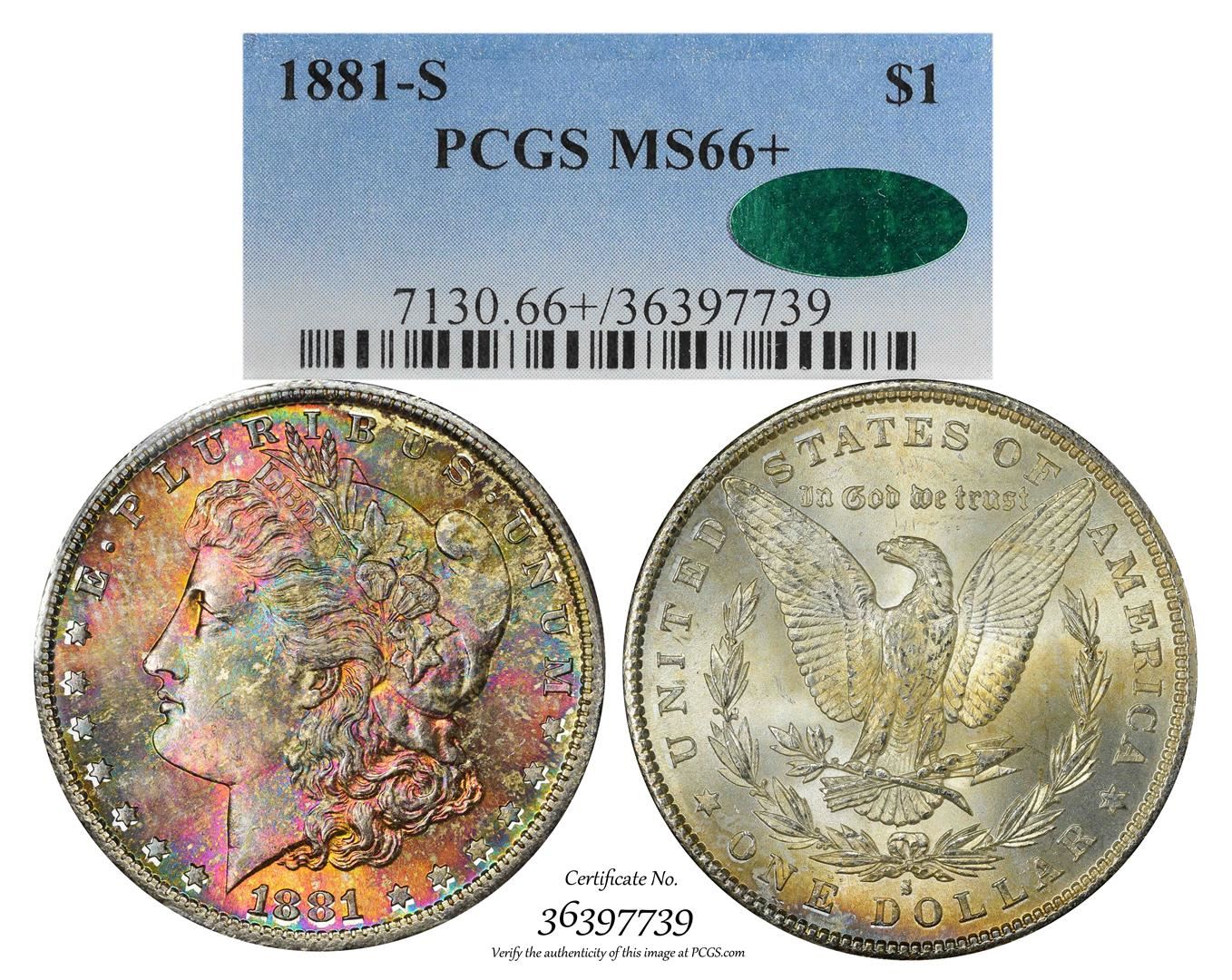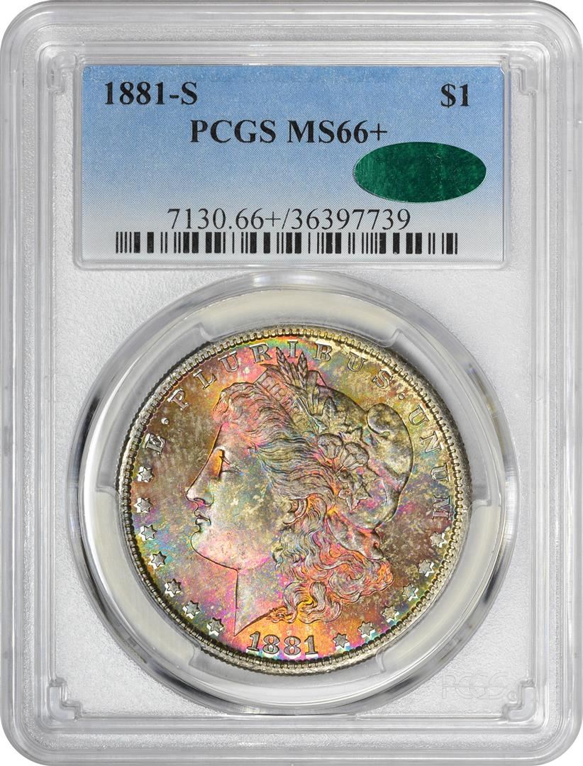 One 1881-S $1 Morgan Silver Dollar Coin PCGS MS66+ CAC Amazing Toning. PCGS Graded.