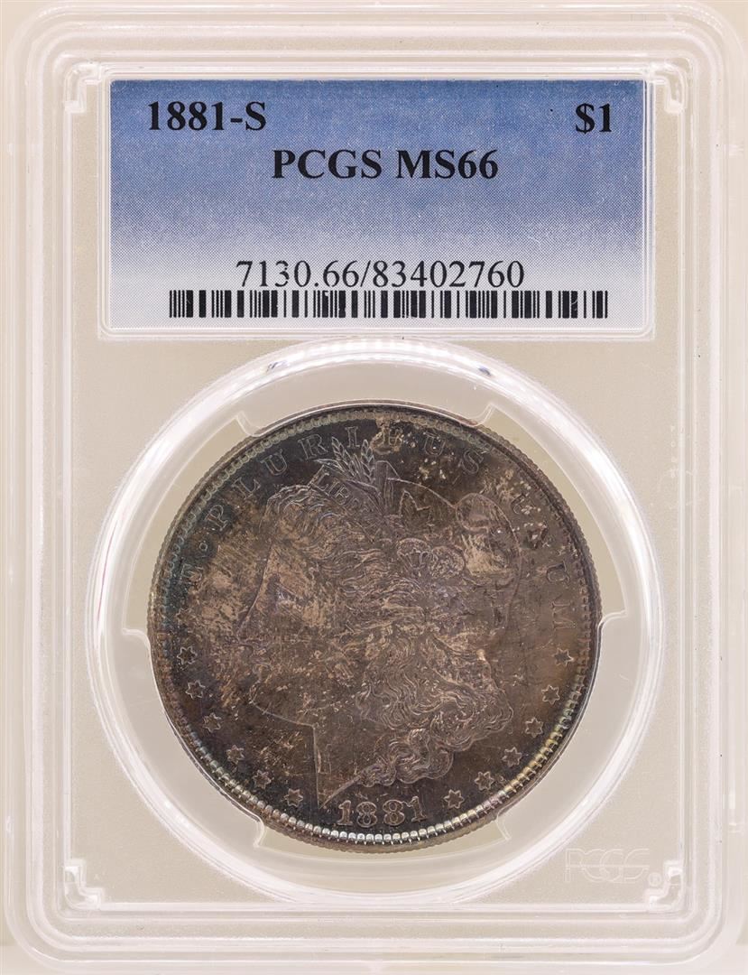 One 1881-S $1 Morgan Silver Dollar Coin PCGS MS66 Great Toning. PCGS Certified.