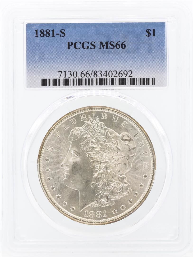 One 1881-S $1 Morgan Silver Dollar Coin PCGS MS66. PCGS Certified.