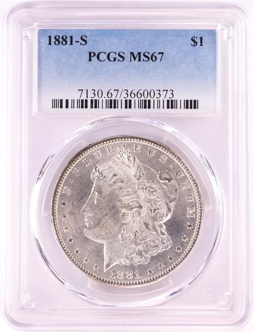 One 1881-S $1 Morgan Silver Dollar Coin PCGS MS67. PCGS Graded.