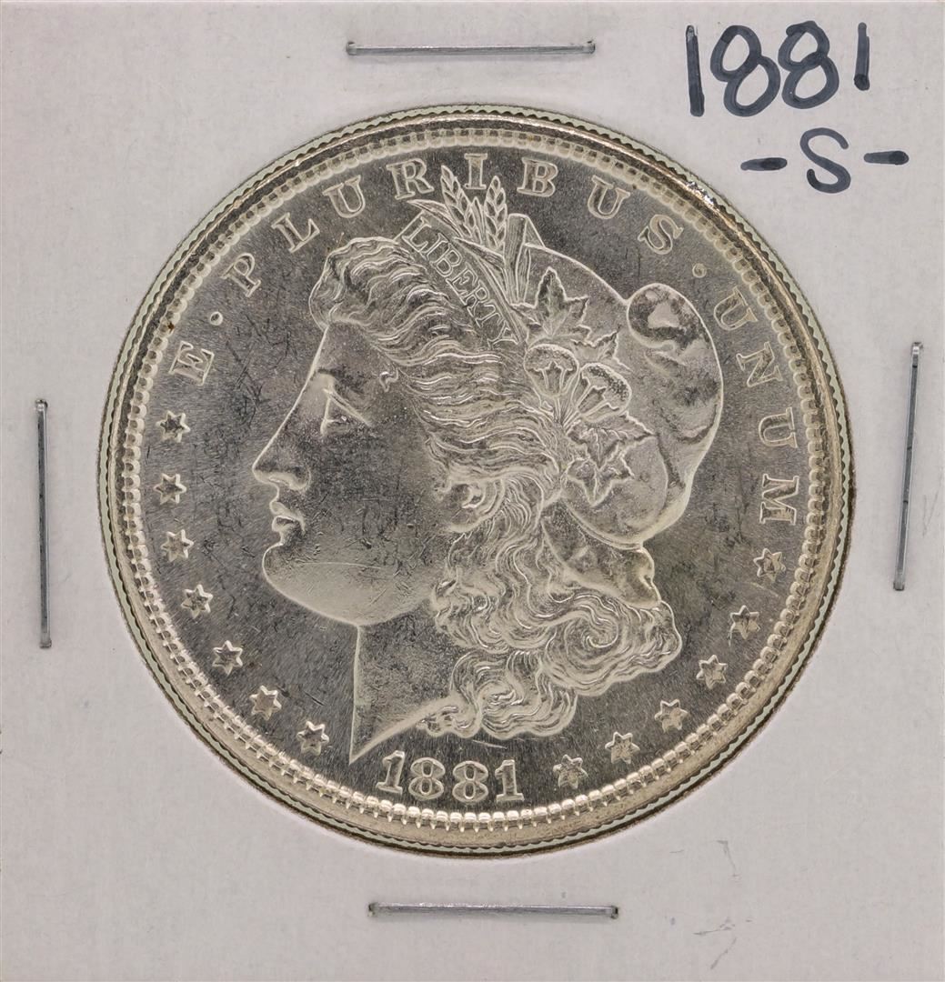 One 1881-S $1 Morgan Silver Dollar Coin.