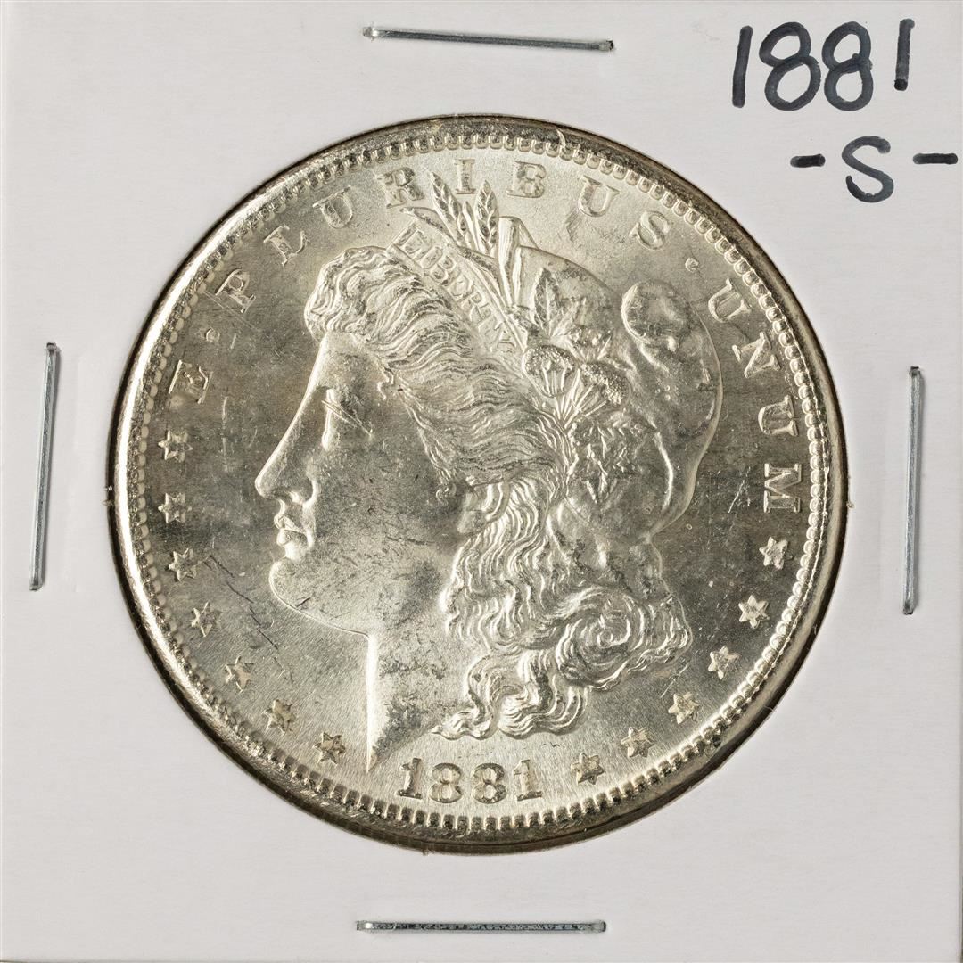 One 1881-S $1 Morgan Silver Dollar Coin.