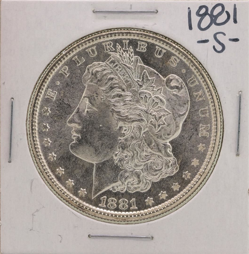 One 1881-S $1 Morgan Silver Dollar Coin.