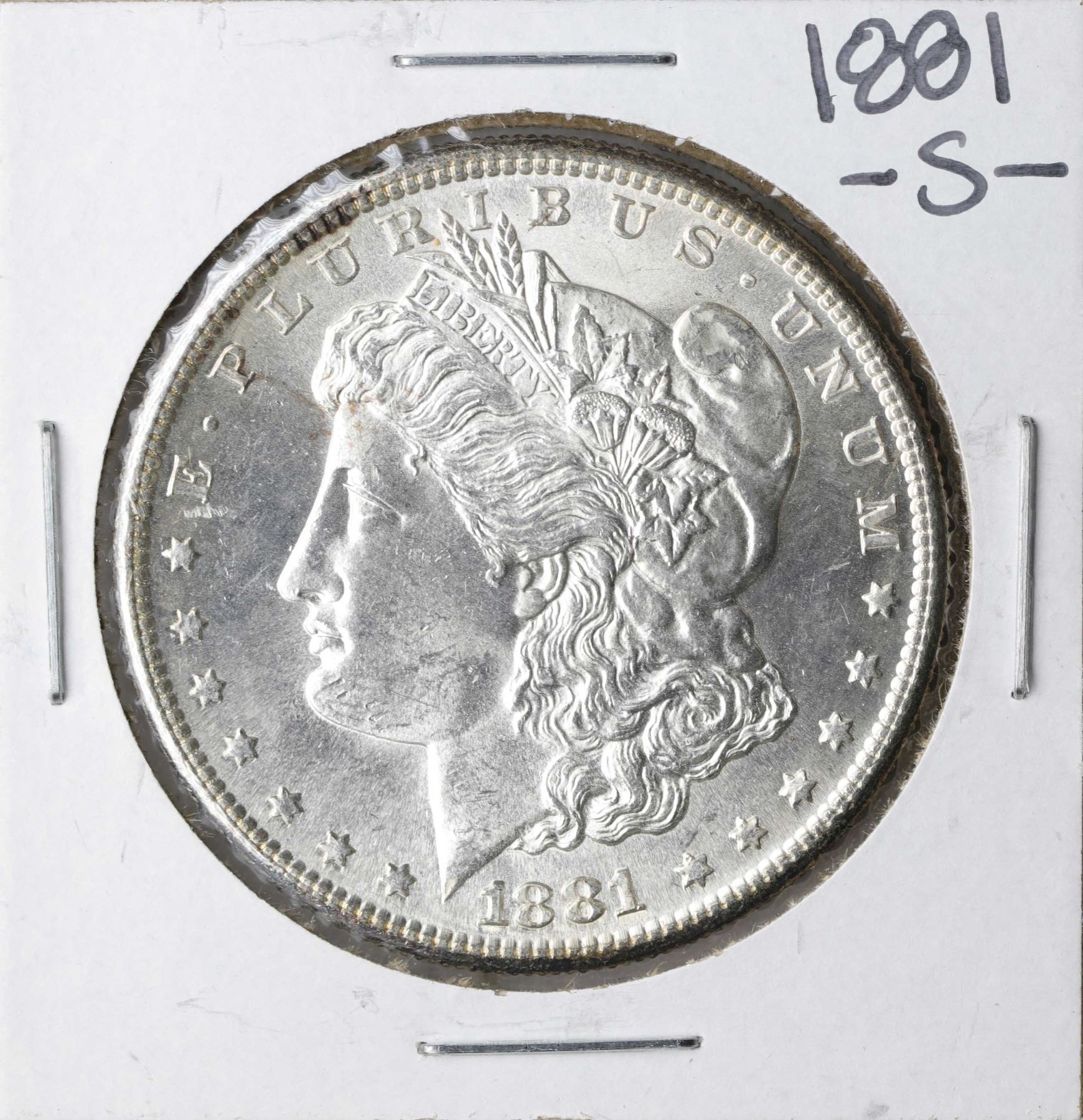 One 1881-S $1 Morgan Silver Dollar Coin.