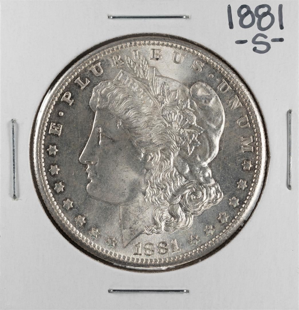 One 1881-S $1 Morgan Silver Dollar Coin.