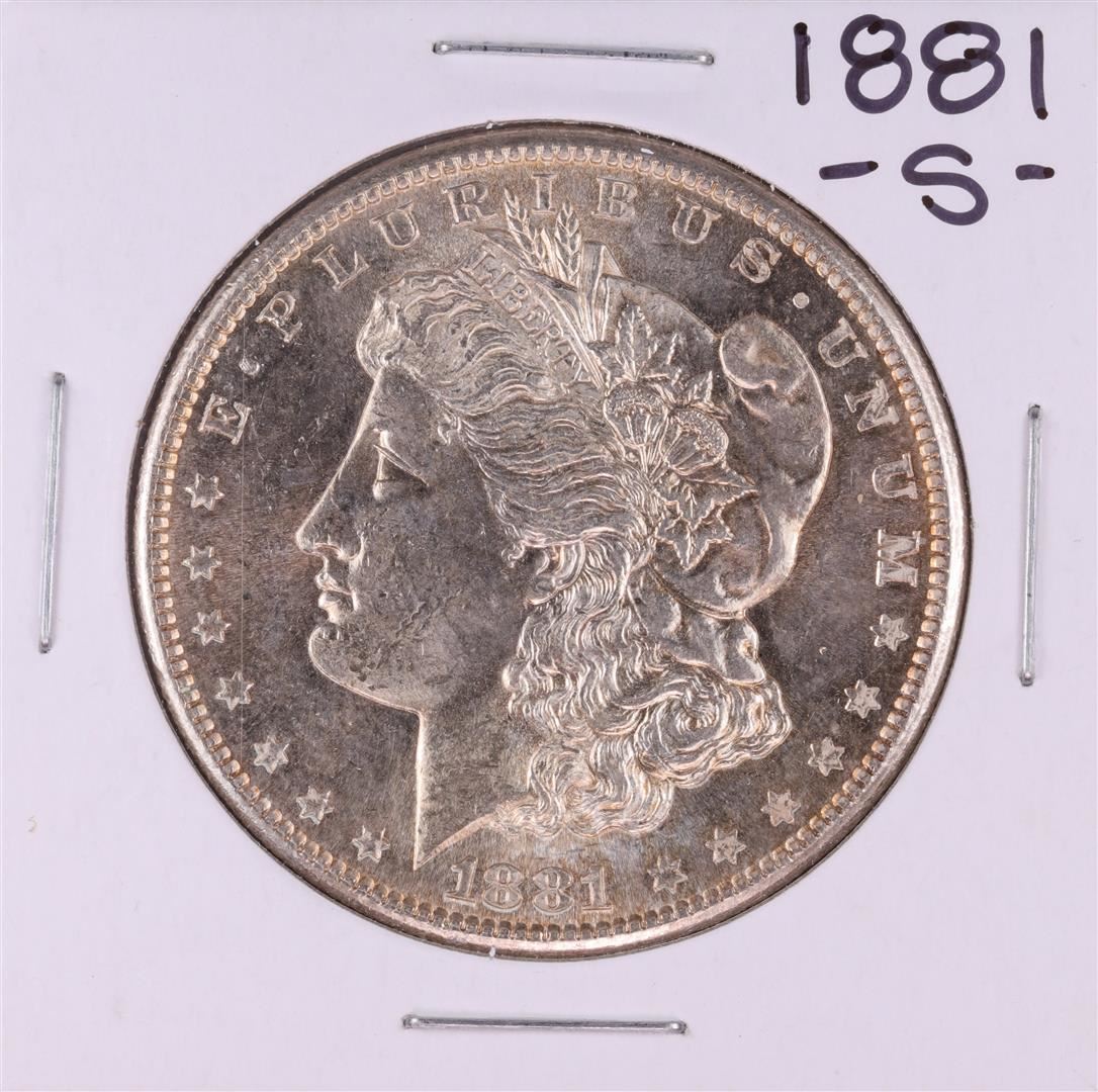One 1881-S $1 Morgan Silver Dollar Coin.
