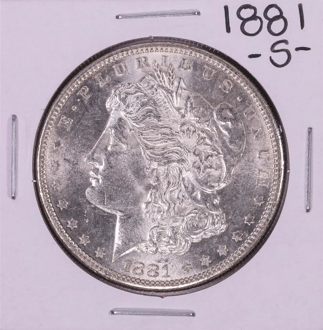 One 1881-S $1 Morgan Silver Dollar Coin.