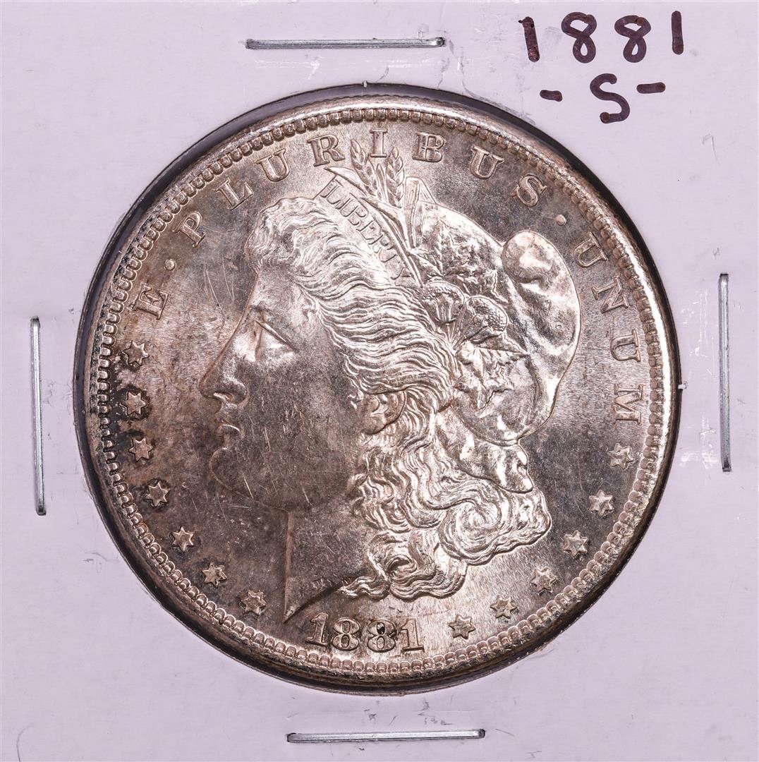 One 1881-S $1 Morgan Silver Dollar Coin.