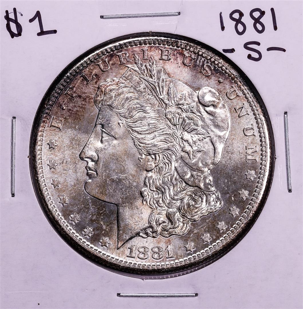 One 1881-S $1 Morgan Silver Dollar Coin.
