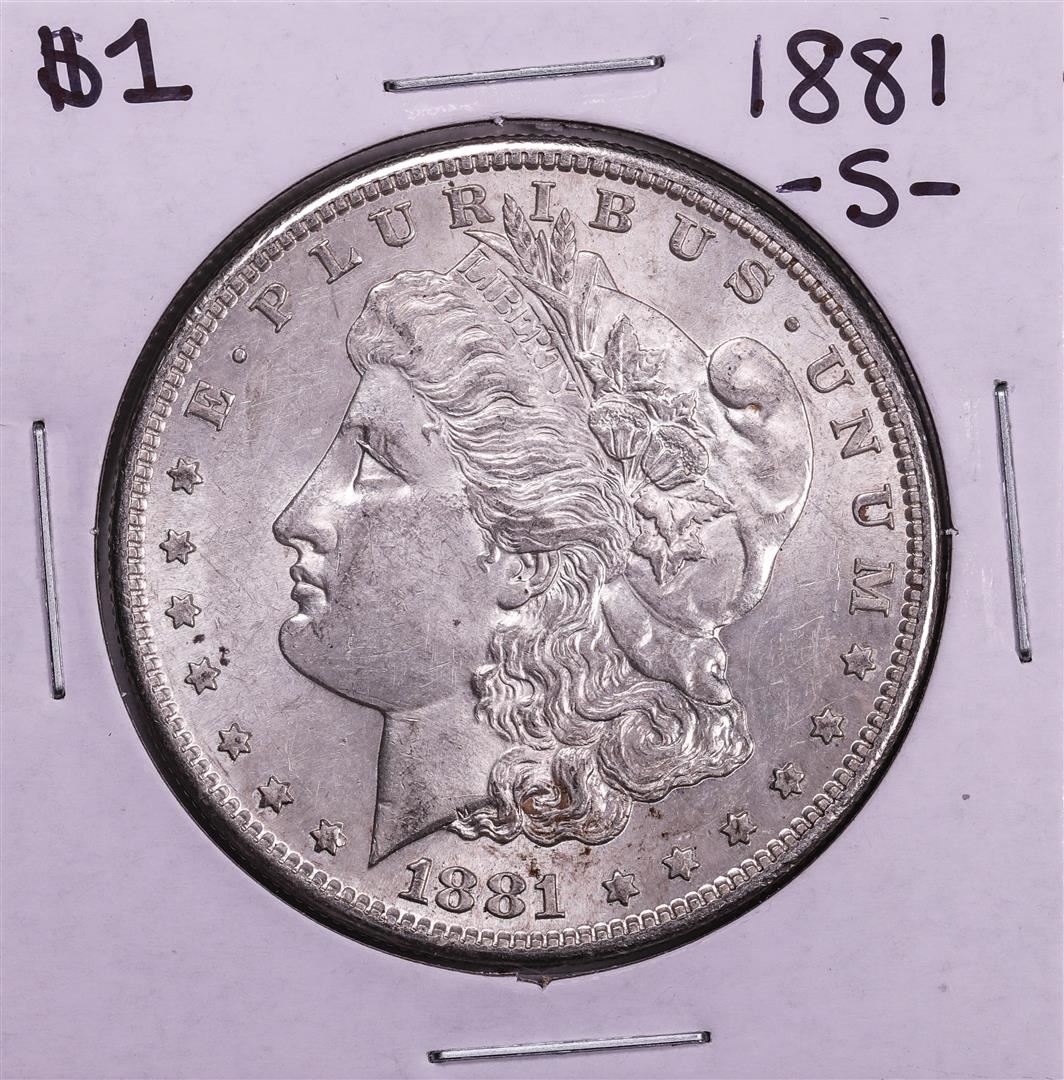 One 1881-S $1 Morgan Silver Dollar Coin.