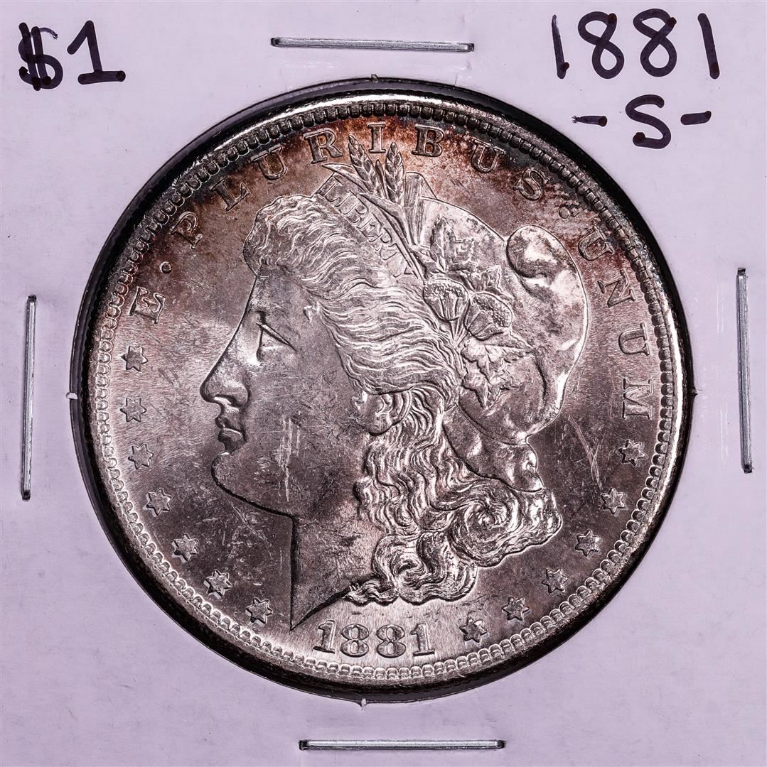 One 1881-S $1 Morgan Silver Dollar Coin.