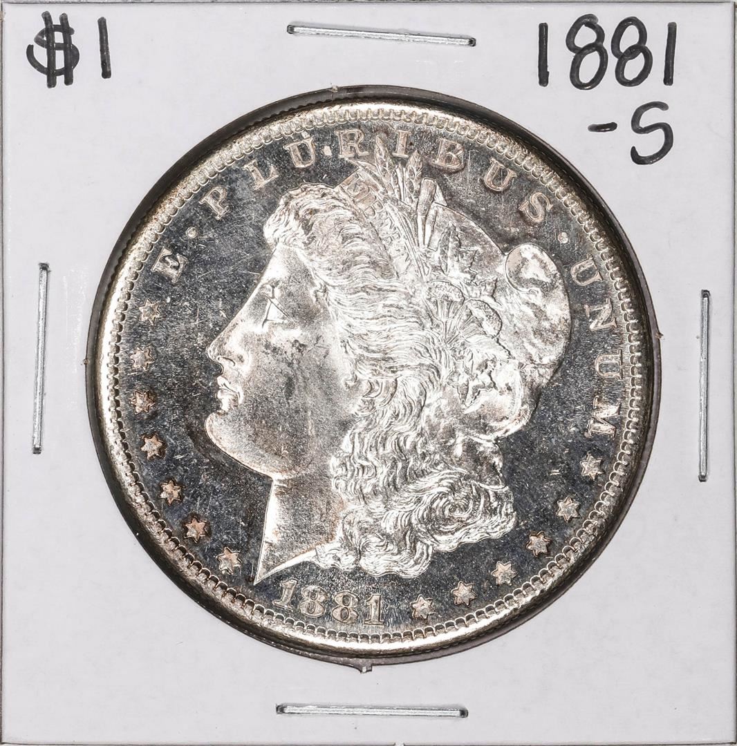 One 1881-S $1 Morgan Silver Dollar Coin.